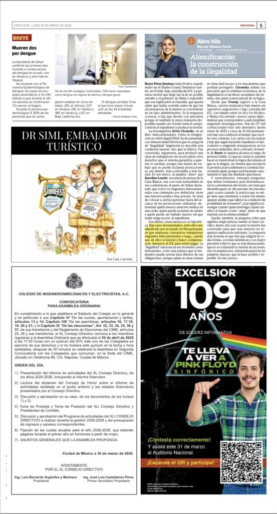 Ejerce la representación legal de los Ingenieros Mecánicos, Electricistas, de Telecomunicaciones, de Tecnologías de la Información, de Electrónica y de ramas afines en México.